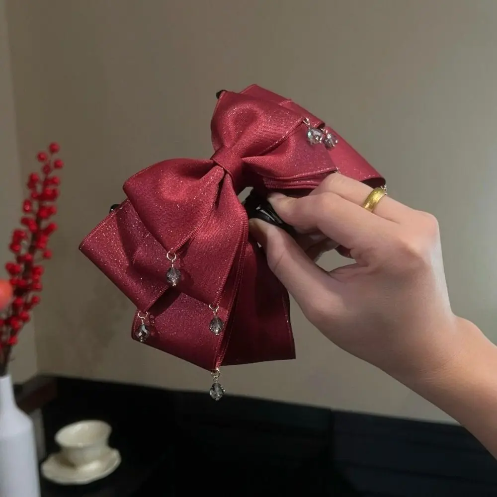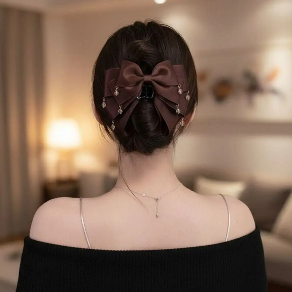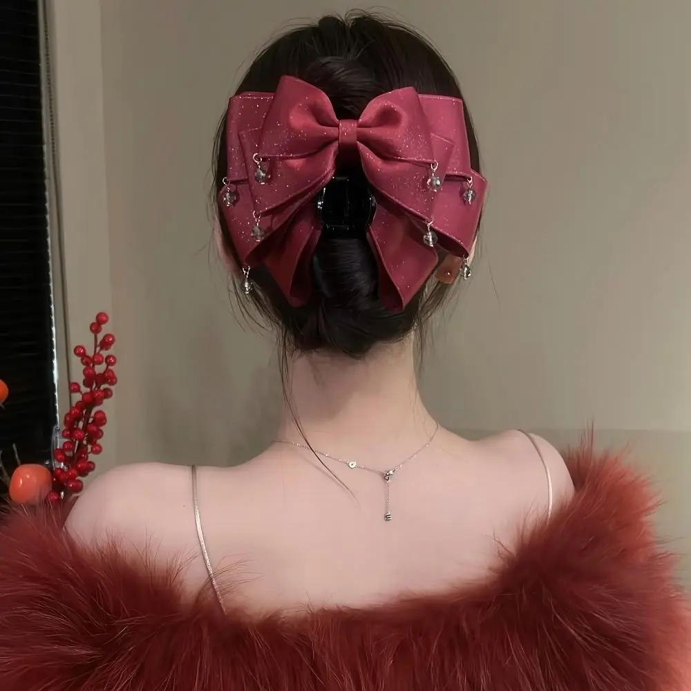 Elegant Butterfly Knot Hair Clip Starry Sky Design Sparkling Diamond Bow Clip Shiny Tassel Shark Clip For Girls Women